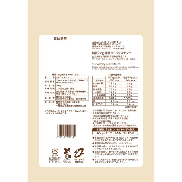 matsukiyo LAB 당질 2.8g 소금구이 믹스넛 200g > 콩류