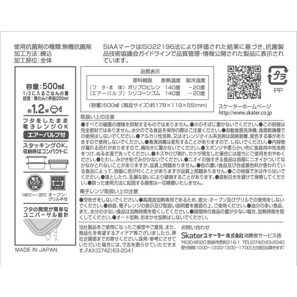 人気キャラクターのフタをしたまま電子レンジ加熱が出来るプラスチック容器です。