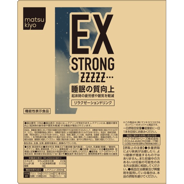 matsukiyo EXSTRONG 릴랙세이션 드링크ZZZZZ 케이스 250ml×30본 > 캔·보틀 캔