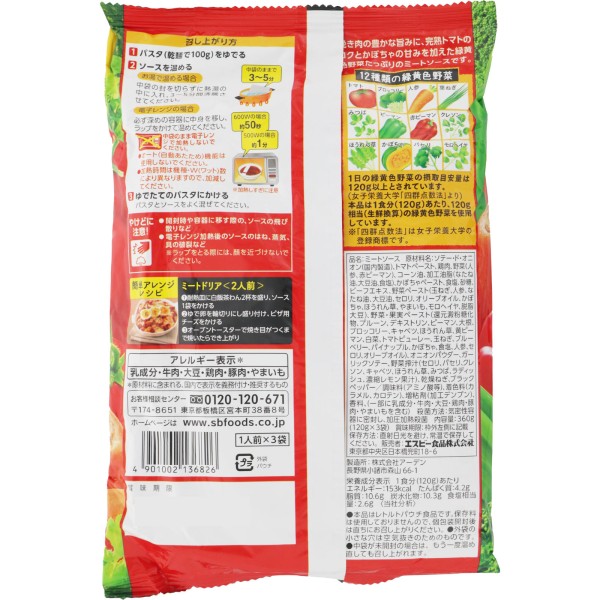 1일분 녹황색 채소 미트소스 120g×3 에스비식품 > 파우치 소스