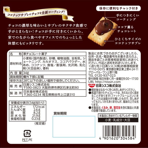 코코넛 사블레 미니 초콜릿 34g 닛신시스코