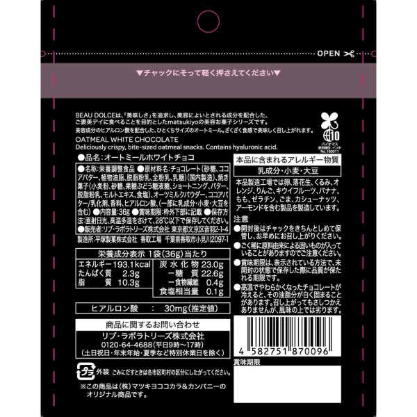 matsukiyo BEAU DOLCE 오트밀 화이트초코 36g > 봉투