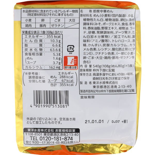 마루짱 세이멘 미소맛 5P 540g 토요스이산 > 라면