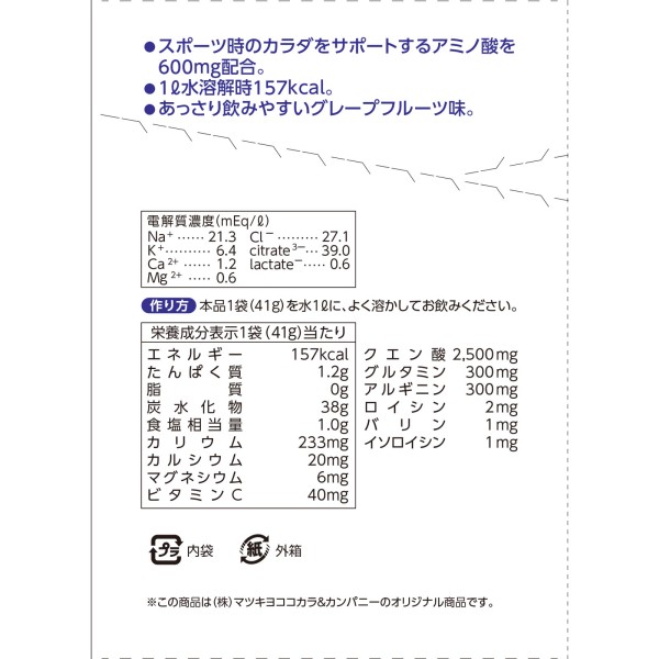 matsukiyo 스포츠 드링크 파우더 아미노산 41g×10봉지 > 분말 팩 음료
