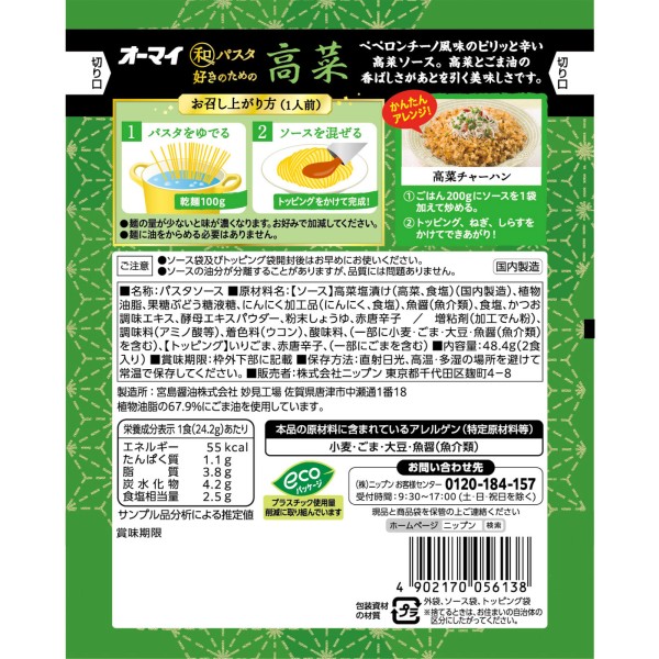오마이 일본풍 파스타 좋아하는 분을 위한 고채 1인분×2 > 파우치 소스