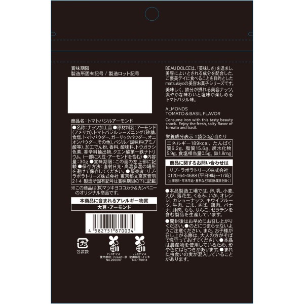 matsukiyo BEAU DOLCE 토마토 바질 아몬드 30g