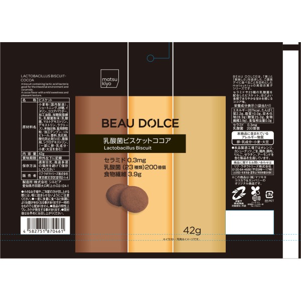 matsukiyo BEAU DOLCE 유산균 비스킷 코코아맛 42g > 비스킷 (쿠키)