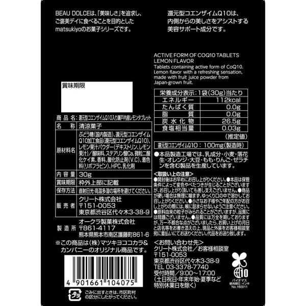matsukiyo BEAU DOLCE 환원형 코엔자임Q10 함유 세토내해산 레몬 타블렛 30g > 하드