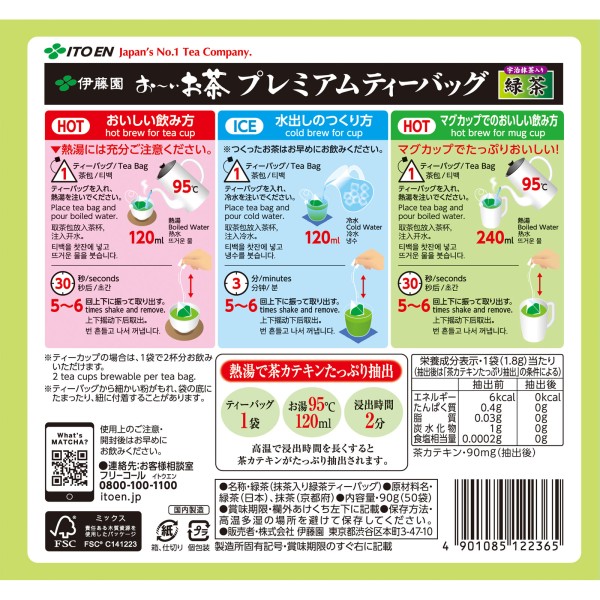 오이오이차 프리미엄 티백 우지 말차 함유 녹차 50봉지 이토엔 > 녹차