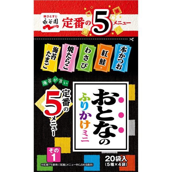 「おとなのふりかけ」シリーズの定番5メニューを詰め合わせた、食卓でのご利用にぴったりのミニパックふりかけです。