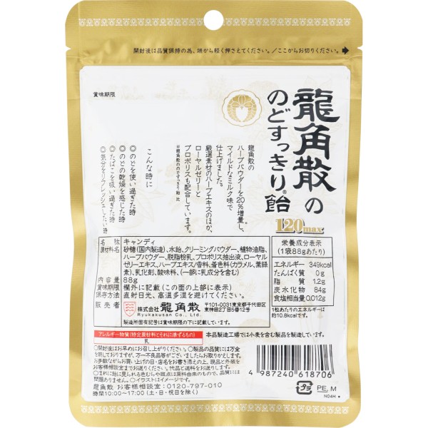 류카쿠산의 목 시원한 캔디 120max 봉지 88G > 목캔디