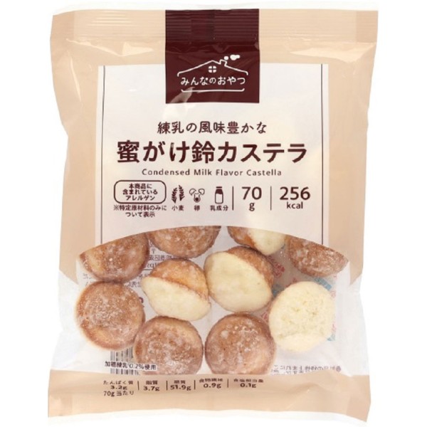 ふわっとした食感と口どけ良く焼き上げた練乳風味の鈴カステラを砂糖蜜で包みました。程よい甘さがくせになるおいしさです。
