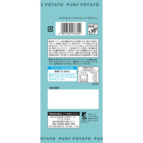 퓨어 포테이토 오호츠크 소금과 암염 55g > 감자 계열 스낵