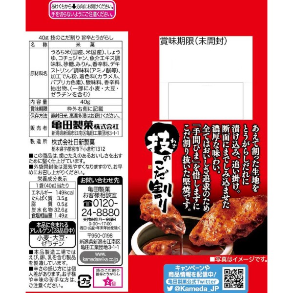 와자노 코다와리 매콤한 고추 40g 가메다제과 > 소형 쌀 과자