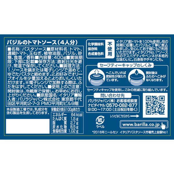바릴라 바질 토마토 소스 400g 미츠비시식품 > 캔 소스