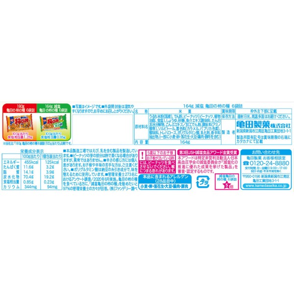 塩分が気になる方へ!塩分30%オフの亀田の柿の種です。