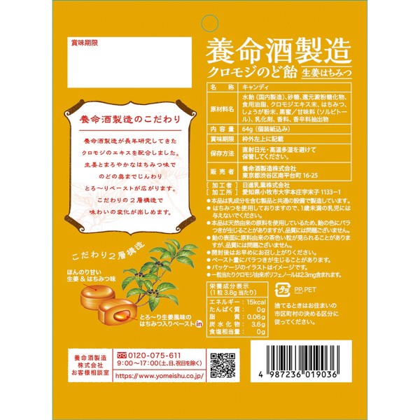 쿠로모지 목캔디 생강 꿀 64g > 목캔디