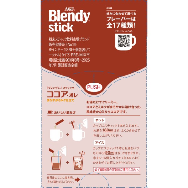 「カフェオレは、得意なんです。ブレンディ。」でおなじみの「Blendy(ブレンディ)」スティックは、クリーミースイートな味わいがスティック1本で手軽にマグカップサイズで楽しめる人気のインスタントスティックシリーズです。