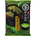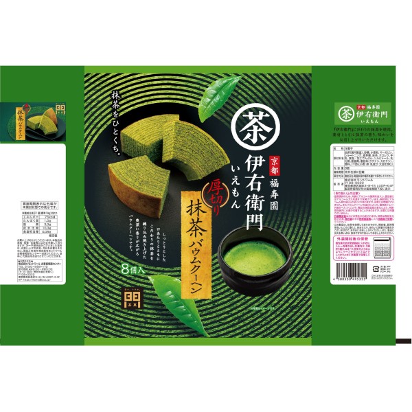 伊右衛門の抹茶を練り込み、ふんわり焼き上げた香り深い大袋バウムクーヘン。PETやティーバッグの伊右衛門と一緒に。