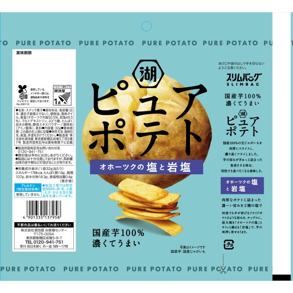 슬림백 퓨어 포테이토 오호츠크 소금과 암염 32g > 소형 스낵