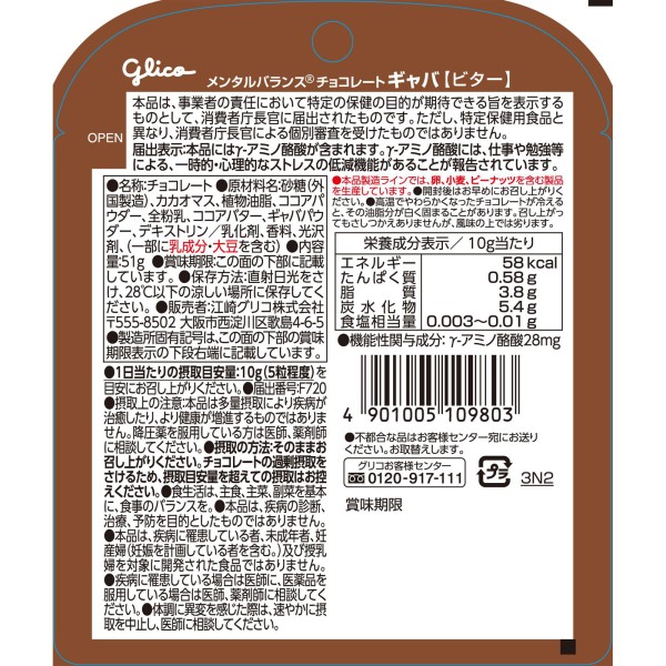 멘탈 밸런스 초콜릿 GABA(비터) 스탠드 파우치 51g > 비터