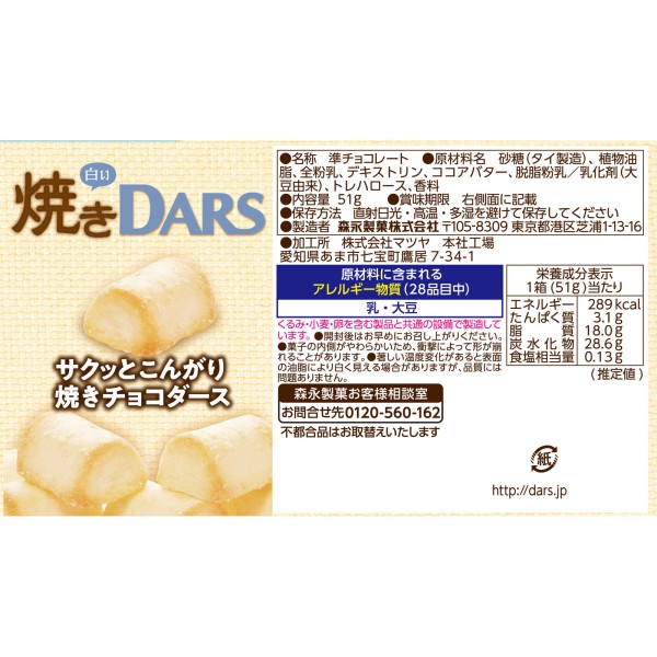 表面をこんがり焼きあげて夏の暑さでも溶けずに、サクッとした食感と白いダースの味わいを楽しめる焼きチョコレート。