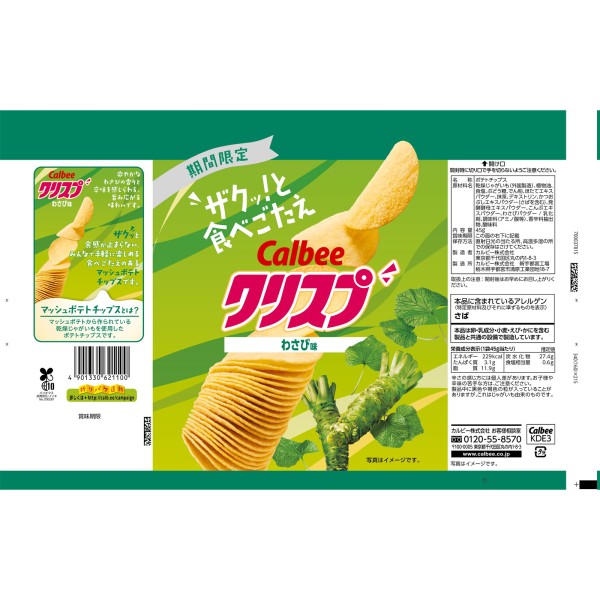 ザクッと食感が止まらない、みんなで手軽に楽しめる食べごたえのあるマッシュポテトチップスです。わさびのツーンと鼻を突き抜ける風味を感じ、更に隠し味の出汁で噛むほどに旨みが広がります。