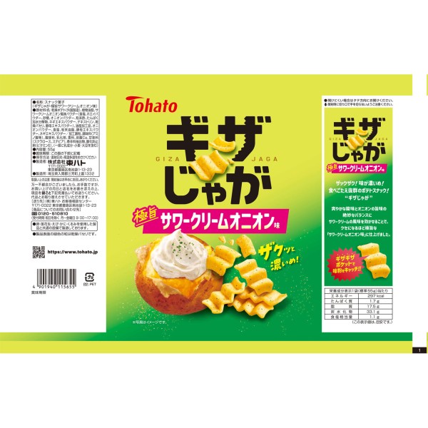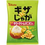 ザックザク食感のたべごたえのあるポテトスナック!!ギザじゃが!ギザギザ形状がシーズニングをしっかりキャッチしてくれることで濃いめの味付けをお楽しみいただけます。爽やかな酸味とオニオンの旨味の絶妙なバランスに、サワークリームの風味を効かせることで、クセになるほど極旨な「サワークリームオニオン味」に仕上げました。
