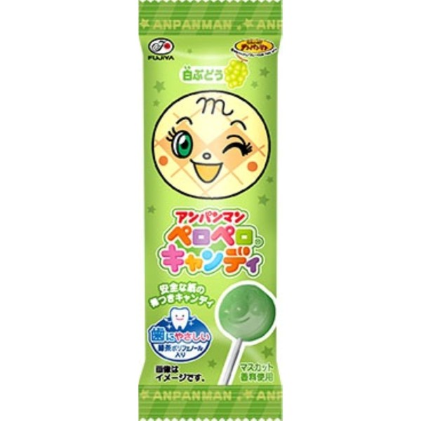7種類の味が楽しめる、アンパンマンの顔型の棒つきキャンディです。パッケージにはアンパンマンキャラクターの顔が大きくデザインされているので、お子様が楽しく選べて、楽しく食べられます。