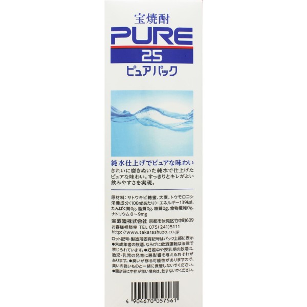 다카라 소주 「퓨어팩」25도 1800ml > 국산